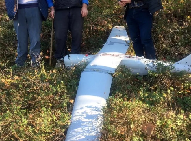 İlk incelemelere göre düşen İHA’nın yaklaşık 2,5 metre kanat açıklığına ve 1,5 metre uzunluğa sahip olduğu belirlendi. Üzerinde bulunan kameranın çalışır durumda olduğu tespit edilirken, kanat ve kuyruk kısmında kırmızı yıldız benzeri işaretler bulunduğu öğrenildi.